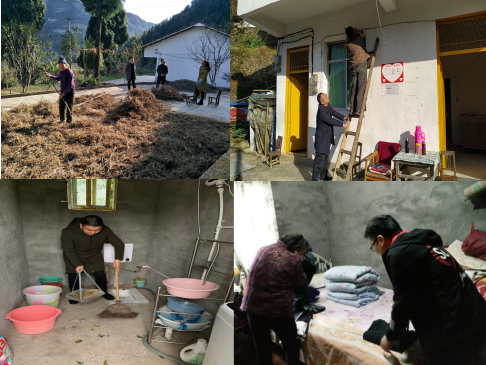 自“不忘初心、牢记使命”主题教育活动开展以来,剑阁职中便一直把脱贫攻坚帮扶工作与主题教育紧密结合,开展了一系列“心系贫困户、助力过寒冬”的扶贫帮扶活动。在完成各项教育教学活动的同时,利用课余时间与假期,在对贫困户进行走访慰问、政策宣讲的基础上,牢牢把握党“为人民服务”的根本宗旨,开展“三同”活动,为贫困户送去了一系列实实在在的关爱:帮助贫困户剥玉米、种小麦、晒谷子,整治环境、铺床叠被、接水装电,自带洁厕液、手套等卫生工具清洗厕所……努力把自己的“初心”奉献给党的教育事业与脱贫攻坚,为党的“使命”添砖加瓦。