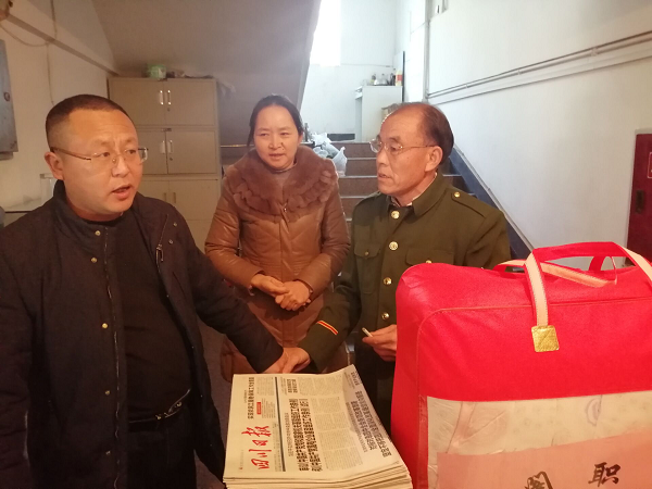 今年,剑阁的冬天比往年来得更早一些,进入11月,温度一降再降,为了使贫困户能够在寒冬来临之前有一个温暖的“被窝”,剑阁职中在办学经费十分紧张的情况下,筹措资金近3万元,为下寺镇空木村、五台村,北庙乡五星村、孤玉村的268户贫困户购买棉被,并于12月1日、2日分别送到每一户贫困户手中。